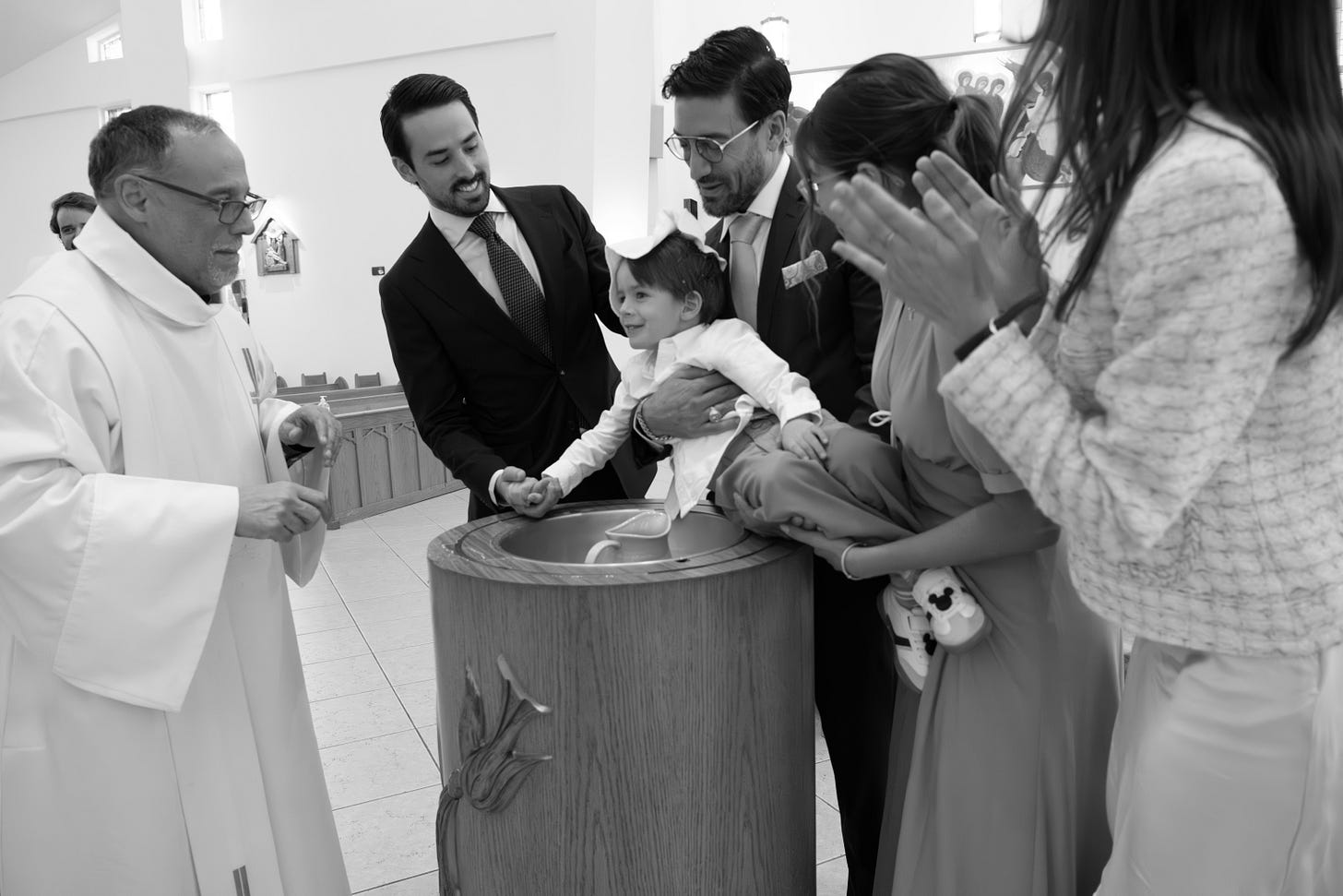 The father chose the child’s name. The mother wore Vara Vintage and Manolo Blahniks.