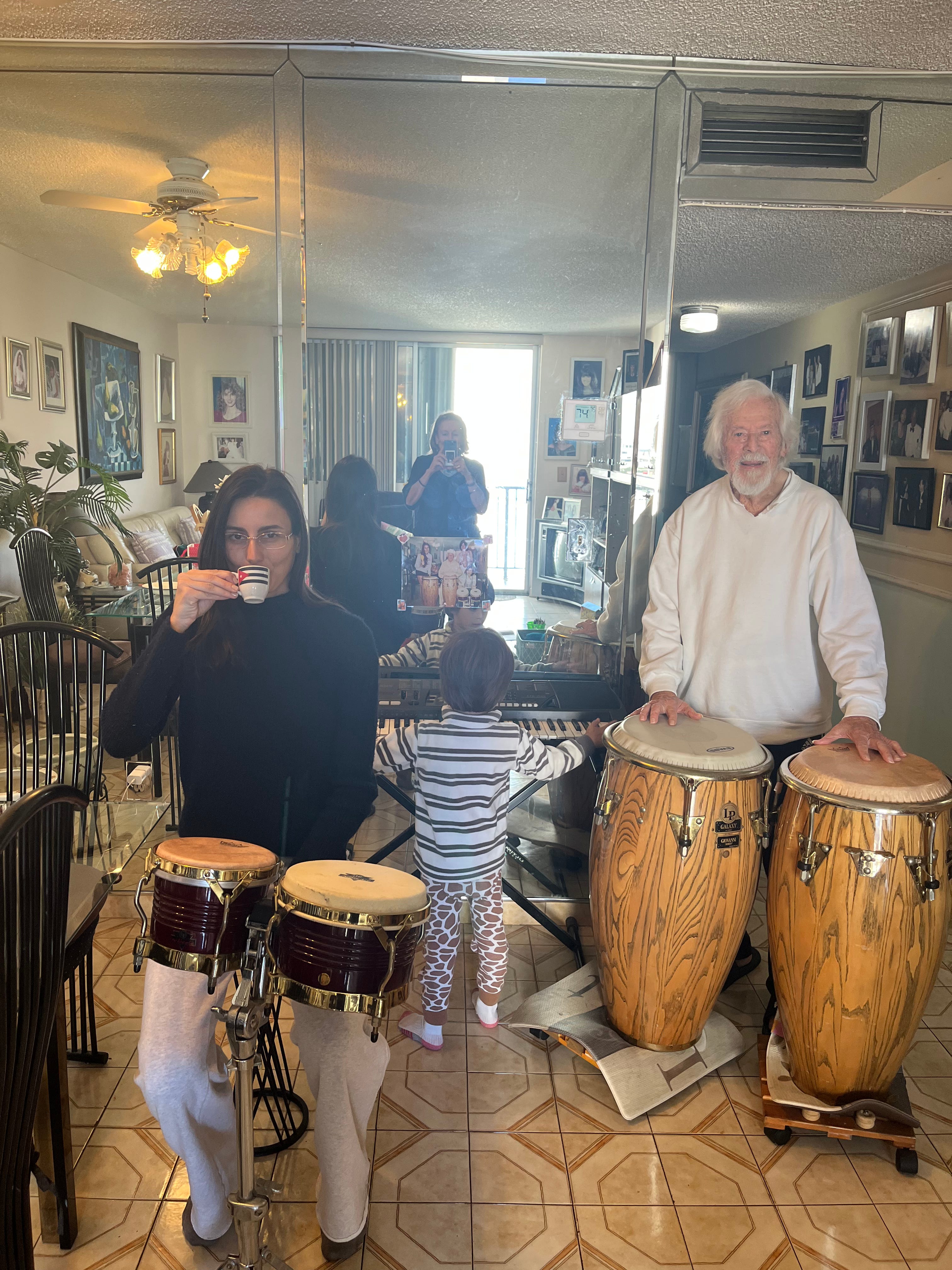 Pupi is ninety-six. Pupi loves music. He became a musician in his sixties. Plays the congas at the club and at home. Pupi is the backbone of the band. I thought covid was going to kill him because it kept him home from the club but it didn’t. No one in Miami stayed home anyway.